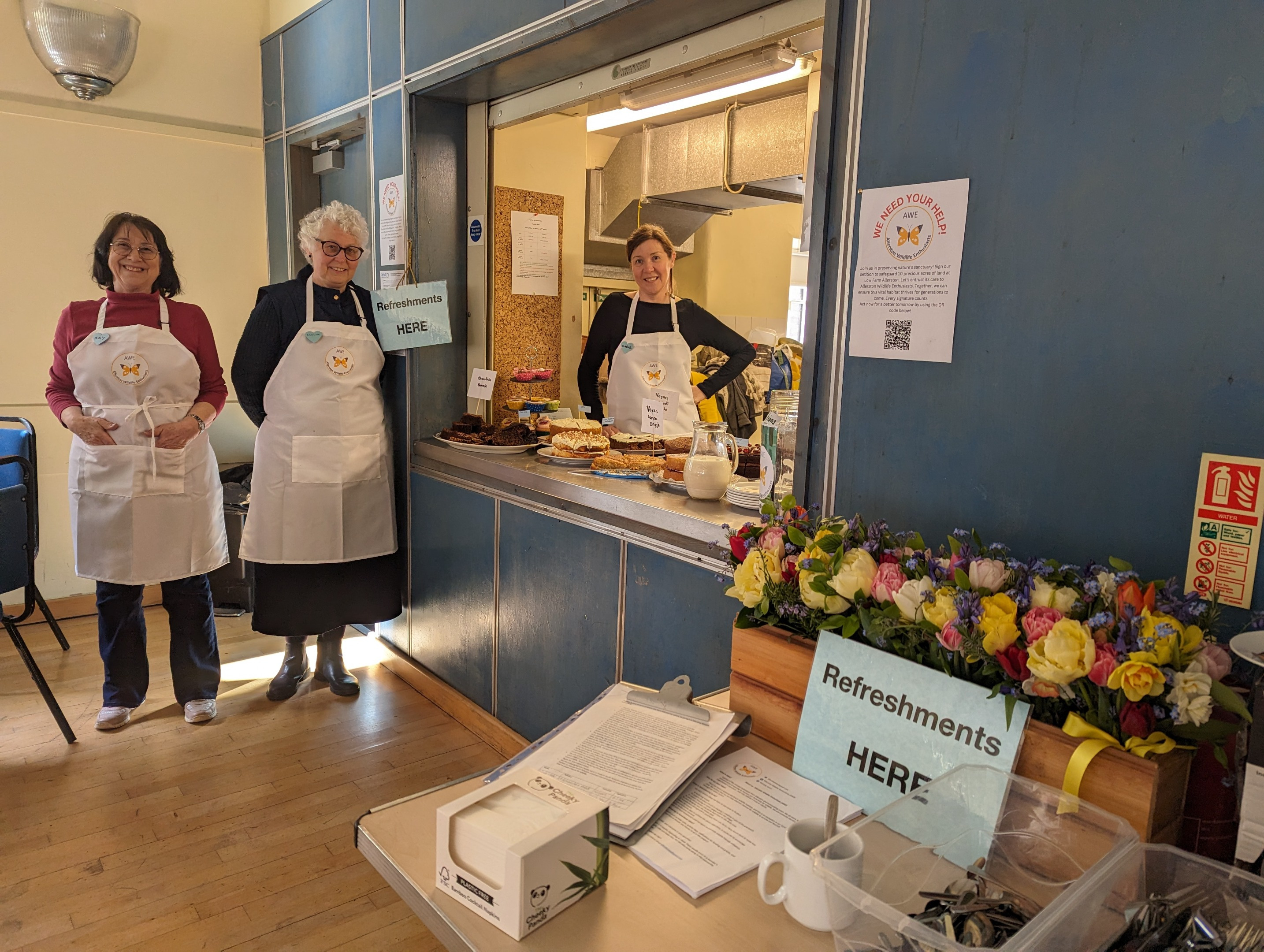 Once again, the bakers of Allerston, with the support of members of PEG, excelled themselves with the provision of some scrumptious cakes, including gluten free and vegan offerings, and the sale of lots of cake, and a few drinks raised the amazing sum of £420 for AWE.